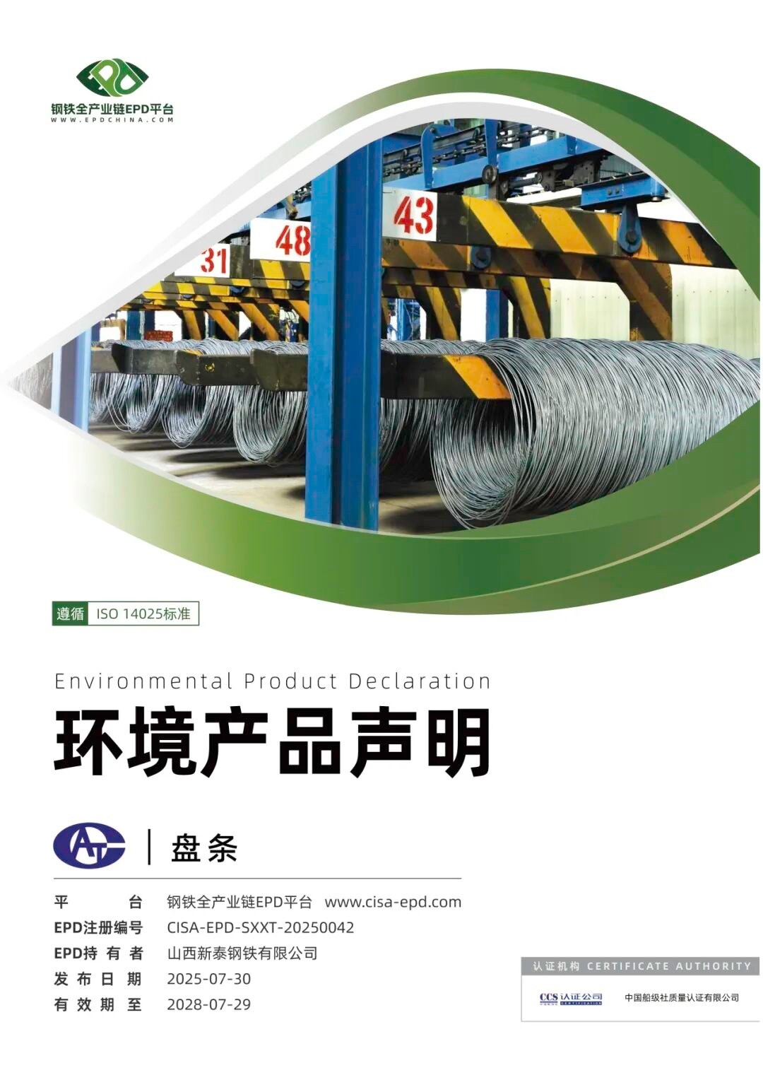 新泰鋼鐵環(huán)境產(chǎn)品聲明(EPD)成功發(fā)布